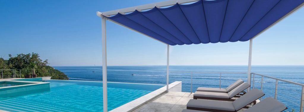 De forma arquitetônica, com raízes vanguardistas que realçam a beleza da natureza e a zona externa, a estrutura Pérgula Zen caracteriza-se por uma cobertura exterior, com design minimalista e funcional. É um toldo com deslizamento horizontal, retrátil, que permite o fechamento perimetral. Além disso, é possível instalar uma segunda lona superior para criar uma câmara de isolamento térmico.
